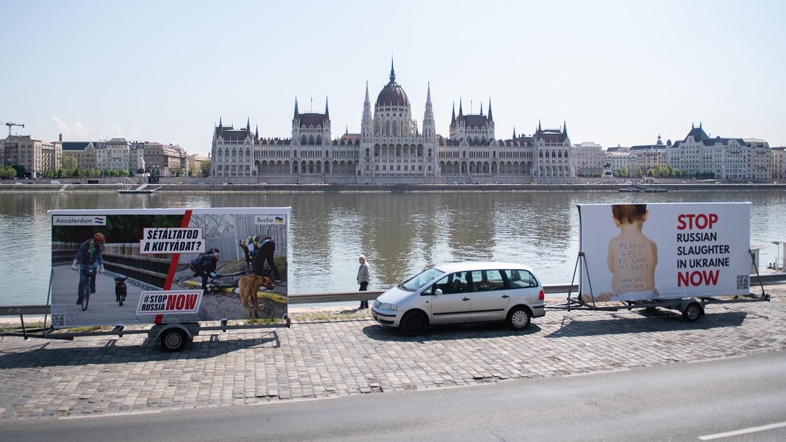A kampány során most három napig Budapesten autókon lehet majd látni az Ukrajnát megszálló orosz hadsereg egységeinek bűncselekményeivel szembesítő, autós óriásplakátok. Ezeken a járókelőket szembesítik azzal, hogy az ukránok pontosan ugyanúgy élték a mindennapjaikat, ahogy ők is, majd jött az orosz invázió és mindent elpusztított belőle. Így például az egyik képen egy berlini kisgyermek látható, amint a plüssmackójával alszik, a másik képen pedig a porig rombolt borogyankai lakótelep romjai között egy földön heverő, plüssmackó „Hol a gyereked mackója?” felirattal.